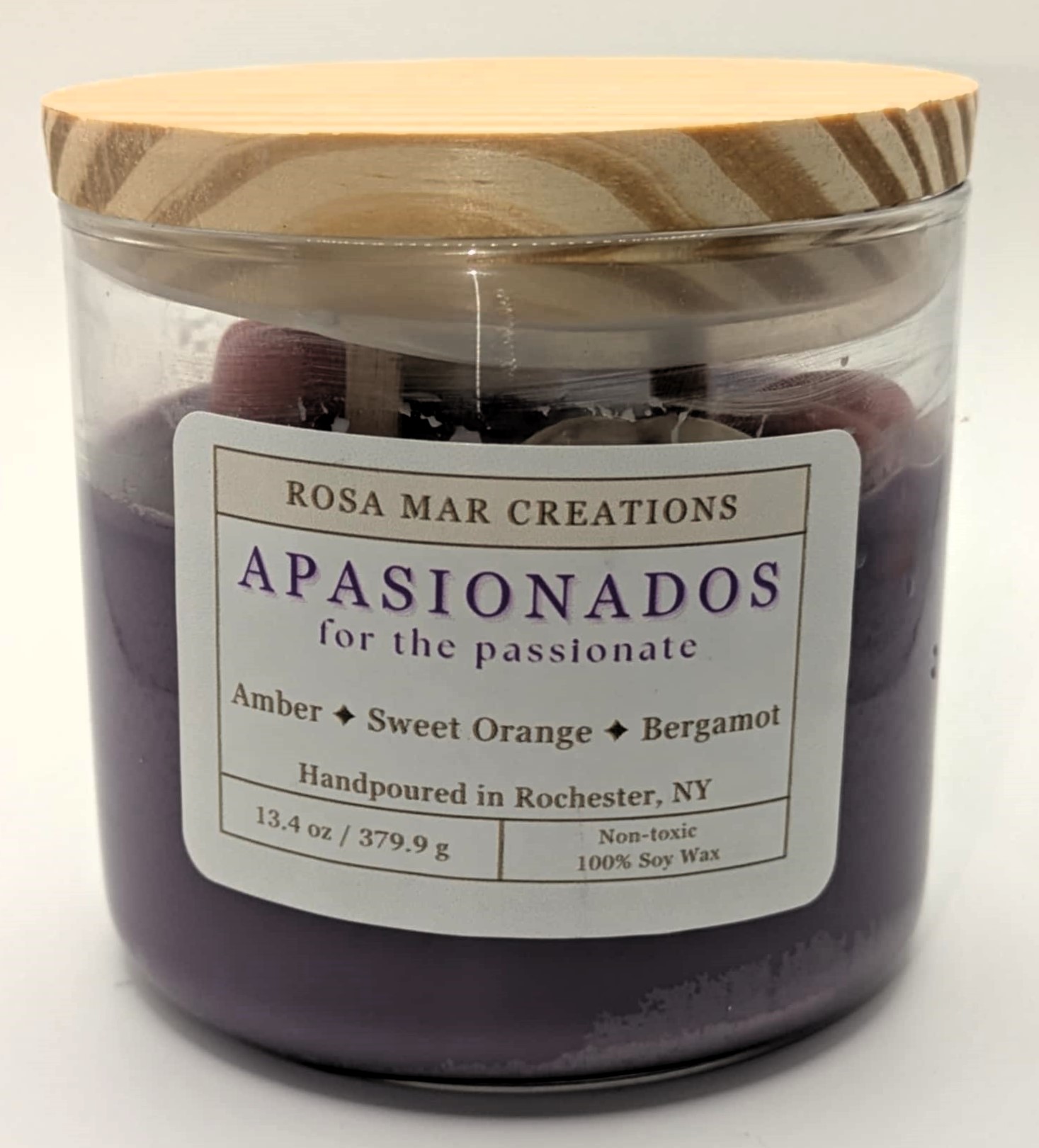 Apasionado smells sensual, like roses. My items were delivered immediately and the packaging was professional. Excited to purchase the other scents and excited about the marble candles that are coming soon. Mariah and Tyler are very kind and thoughtful, they are also a scientist so you know what they are making is safe.
