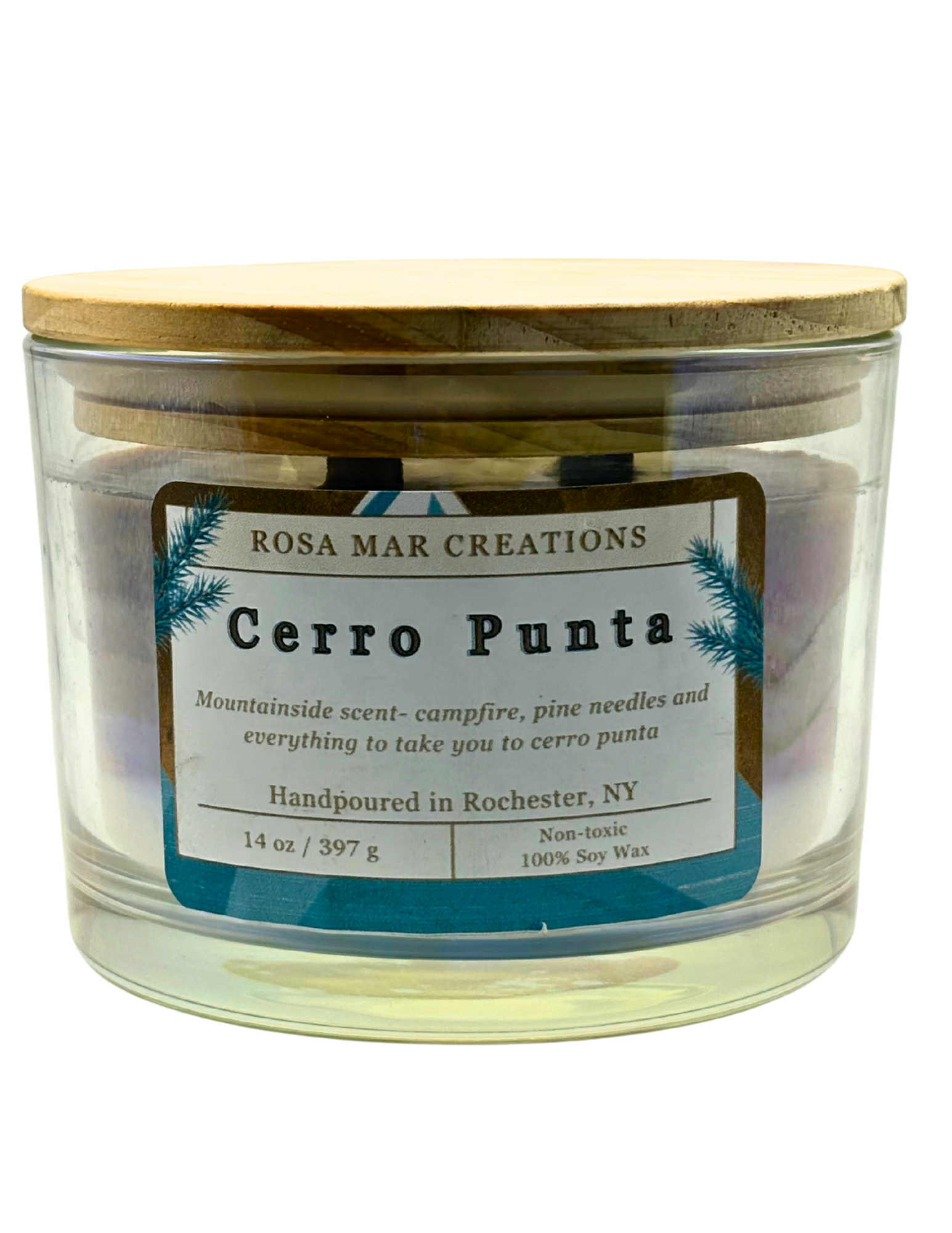 Fresca y terrenal, Cerro Punta atrapa la calma de la sierra con el aroma limpio del pino. Más ancha y de aguja fina, esta vela recuerda el aire frÃo de las alturas boricuas—una fragancia que a la vez tranquiliza e inspira. Perfecta pa’ reencontrarte contigo mismx, es un recordatorio de la fuerza silenciosa que vive en la naturaleza.