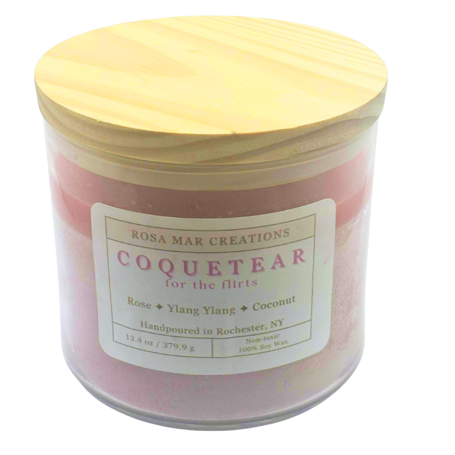 Effortlessly charming and irresistibly alluring, Coquetear is a candle that embodies the playful dance of attraction. This enchanting blend of ylang-ylang, coconut, and rose creates a fragrance that teases the senses with its exotic warmth and romantic elegance.