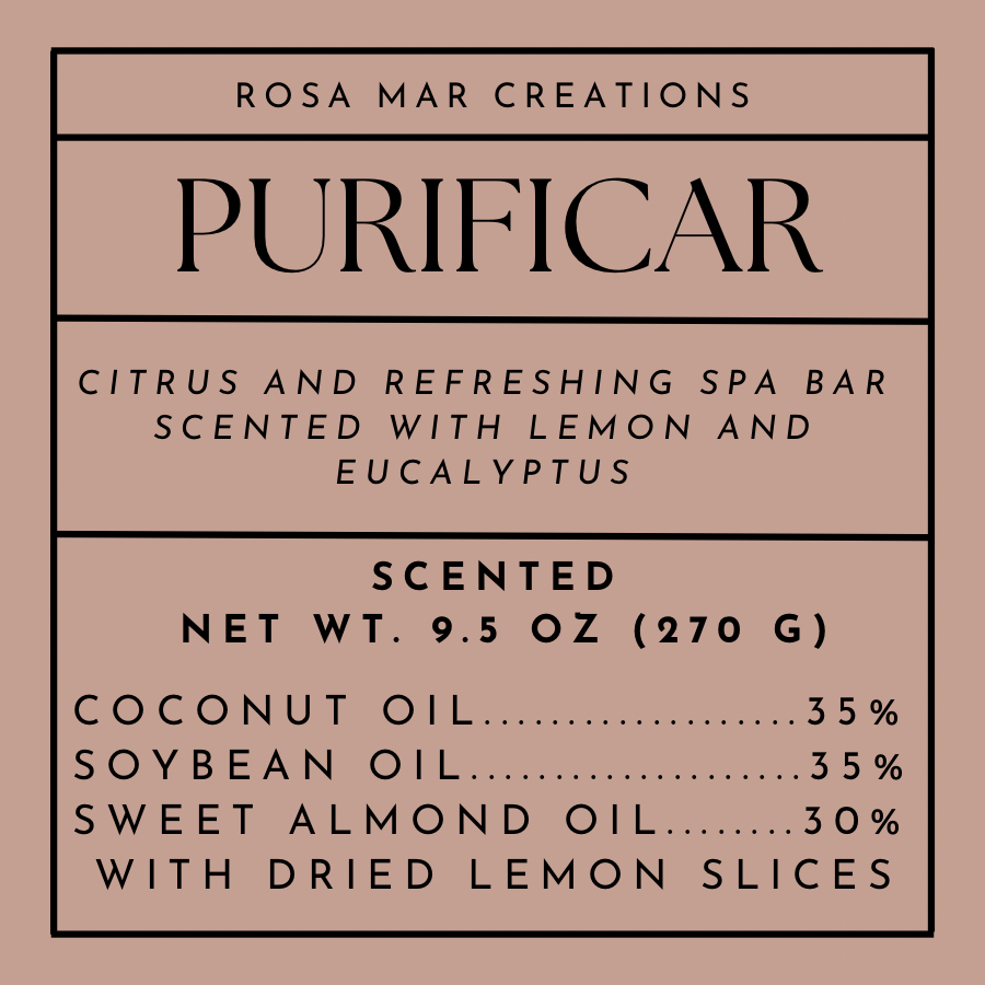 Purificar is freshness for your skin and soul. Crafted with a rich blend of natural oils and scented with lemon and eucalyptus, this spa-inspired bar brings an uplifting, energizing cleanse to your daily ritual.