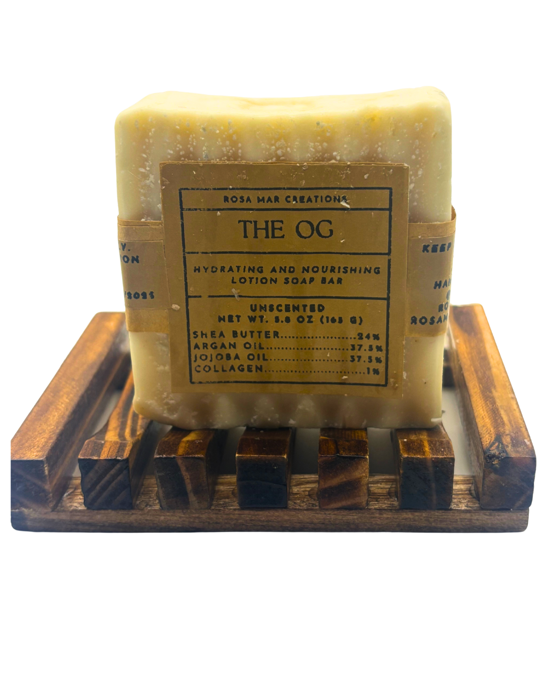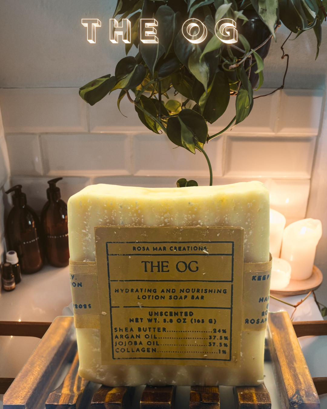 Meet The OG, the foundation of Rosa Mar Creations — a no-frills, unscented bar that delivers pure hydration and nourishment. Thoughtfully crafted with a powerhouse blend of rich butters and oils, this bar is perfect for sensitive skin or anyone looking for a simple, luxurious cleanse without added fragrance.